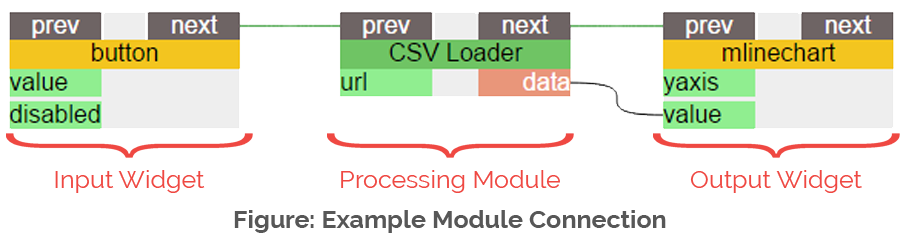 the visual representation of the CB backend, how widgets connect to each other to each other to create the final workflow